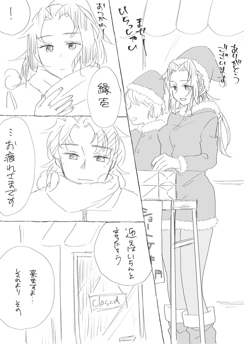 21 104 #ぬくまる冬の縁巌ミラフェス ※現パロ/女体化(姉上) バイト終わりの姉上を迎えに行く弟 フェスお邪魔します…!! 🎄ネタも掛けてるので今日を過ぎたら上げづらい…!と思ってめっちゃ雑 ごめんなさい 21/12/25 22:28