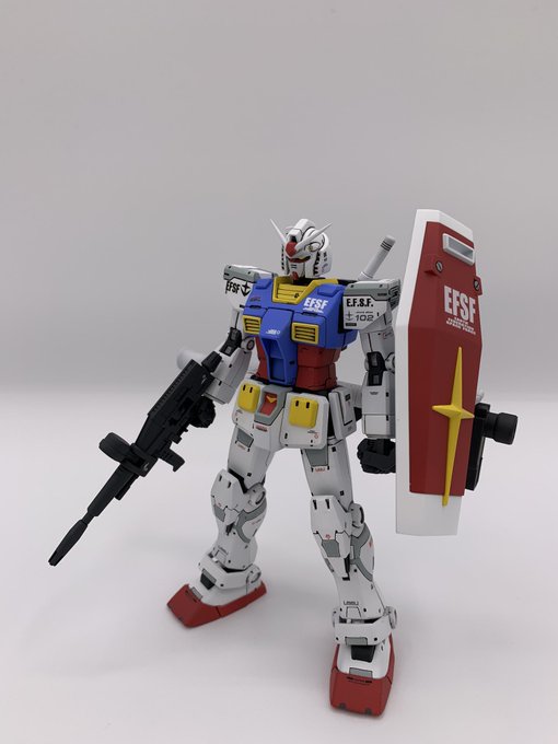 ガンダムです。 オリジン版のHGガンダムになります。 完成のタイミングでバンダイ様より破損したジオングのパーツも届きました。 近いうちに我が家はアバオアクーと化すことでしょう☺️ #ガンプラ #ガンプラ好きとつながりたい #ガンプラの画像を貼るとRTされると聞いて