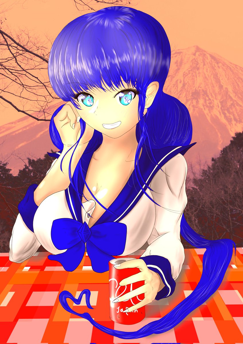 「ハイチーズ」(作成中) テント内のマットで富士山をバッグに、ラブラブな名ちゃんと鳴海ちゃん! 色入れまでですが。今日は陰影を付けて生き生きさせて行きます! 他、過去作 #絵描きさんと繫がりたい #イラスト好きな人と繋がりたい #キャンプ好きと繋がりたい #絵師さんと繋がりたい