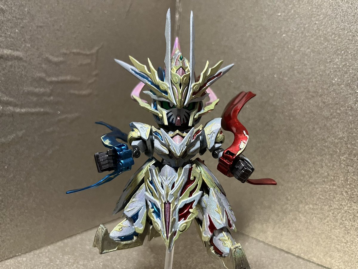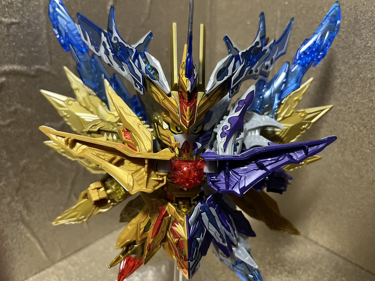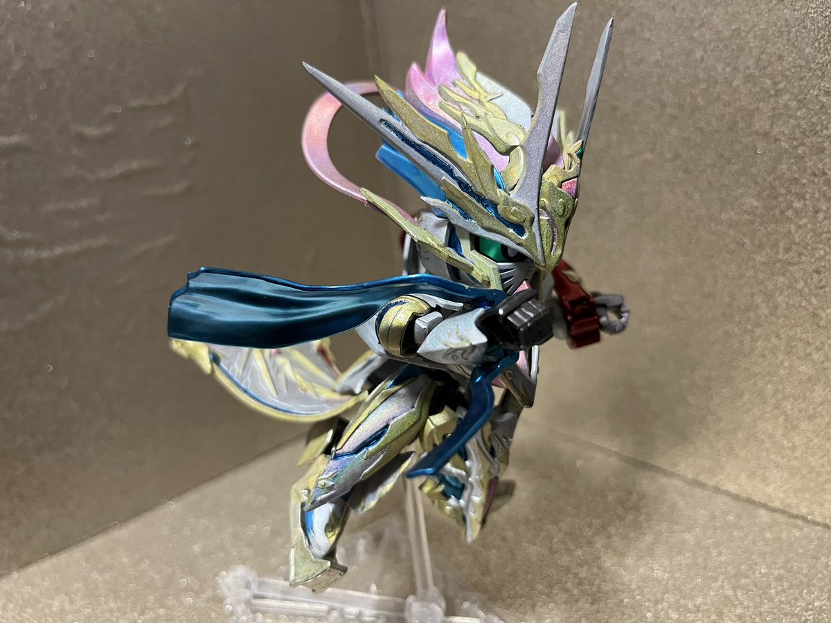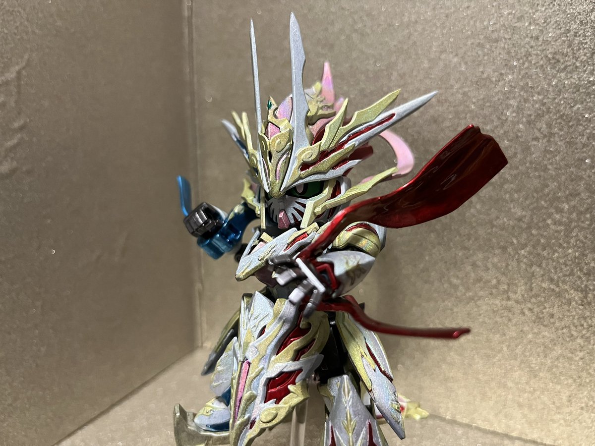 あけましておめでとうございます。新年最初の完成ガンプラは斉天大聖悟空インパルスガンダム闘戦勝仏です。制作は去年の11月から少し初めて今日完成しまた。白い部分は月光蝶ホロシルバー、金の部分MEPEホロ、ピンクの部分トランザムホロで塗装しまた。 #SDガンダムワールドヒーローズ #ガンプラ