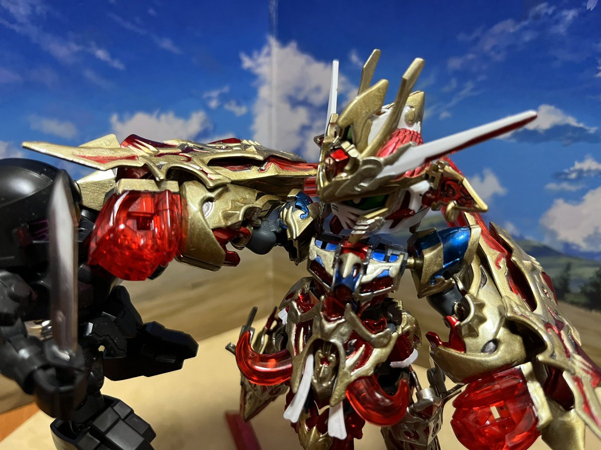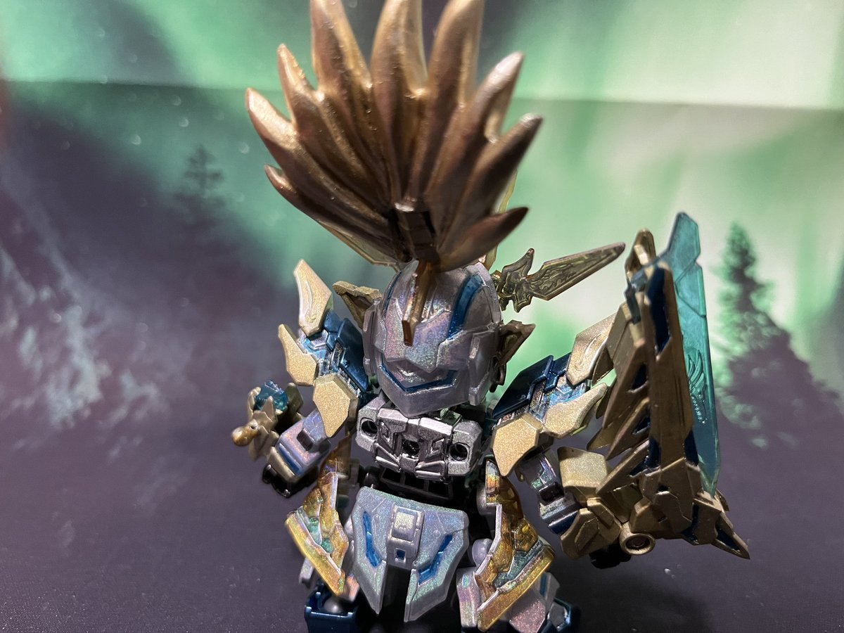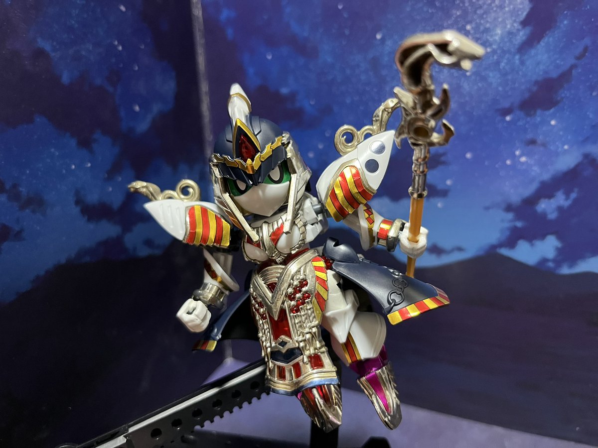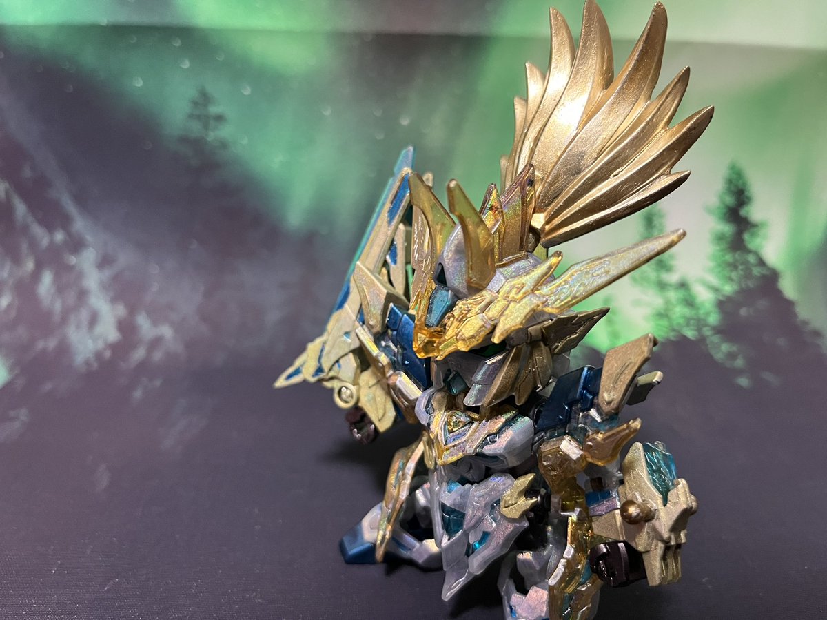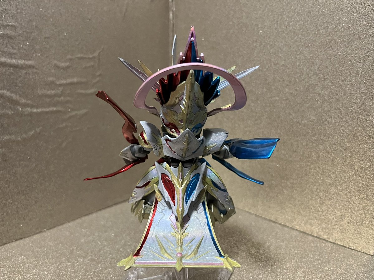 あけましておめでとうございます。新年最初の完成ガンプラは斉天大聖悟空インパルスガンダム闘戦勝仏です。制作は去年の11月から少し初めて今日完成しまた。白い部分は月光蝶ホロシルバー、金の部分MEPEホロ、ピンクの部分トランザムホロで塗装しまた。 #SDガンダムワールドヒーローズ #ガンプラ