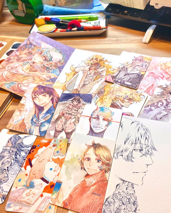 8 55 #今月描いた絵を晒そう あまり数を描けた気がしなかったんですが、2次創作と色見本も入れたらそこそこの枚数だった ペンてるエフ水彩の使いやすさを知ることができて良い日々でした…🙏 #透明水彩 #アナログイラスト #ペンてるエフ水彩 22/11/30 23:24