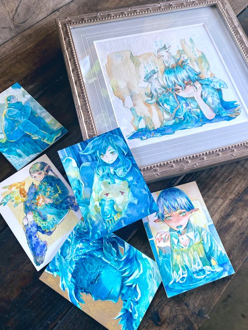 13 50 #ARTsLABo #透明水彩 あお展に額装1点とATC5点で参加します☺️繊細で奥深いあおに包まれた優しい時間を感じていただければ幸いです🟦 23/05/20 08:43