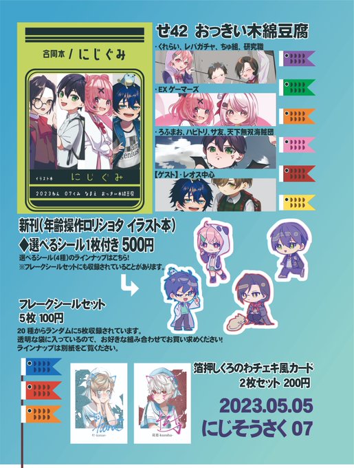 #にじそうさく07 友と参加します! イラスト本とかシールとかチェキ風カードなどなど... みんな可愛いので是非✨ *年齢操作(ロリショタ)のイラスト集です