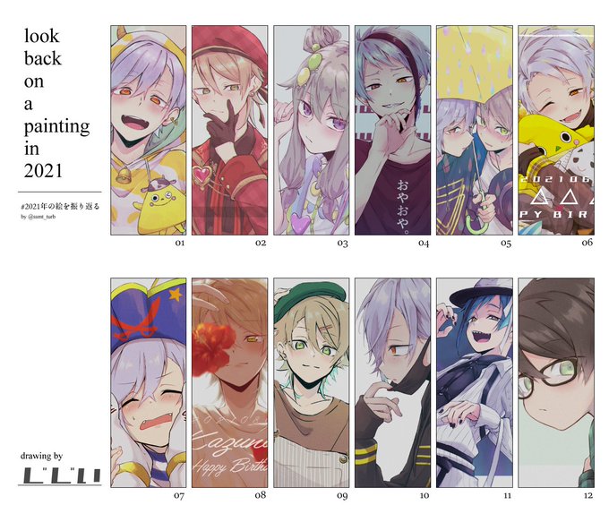 #2021年の絵を振り返る 月によっては選ぶの迷ったりするくらいには描いてた! 相変わらずW3ちゃんばっか描いてた気がするけど、去年よりかずくん単体いっぱい描いたしえすりくん以外のジャンルも結構描いてた~
