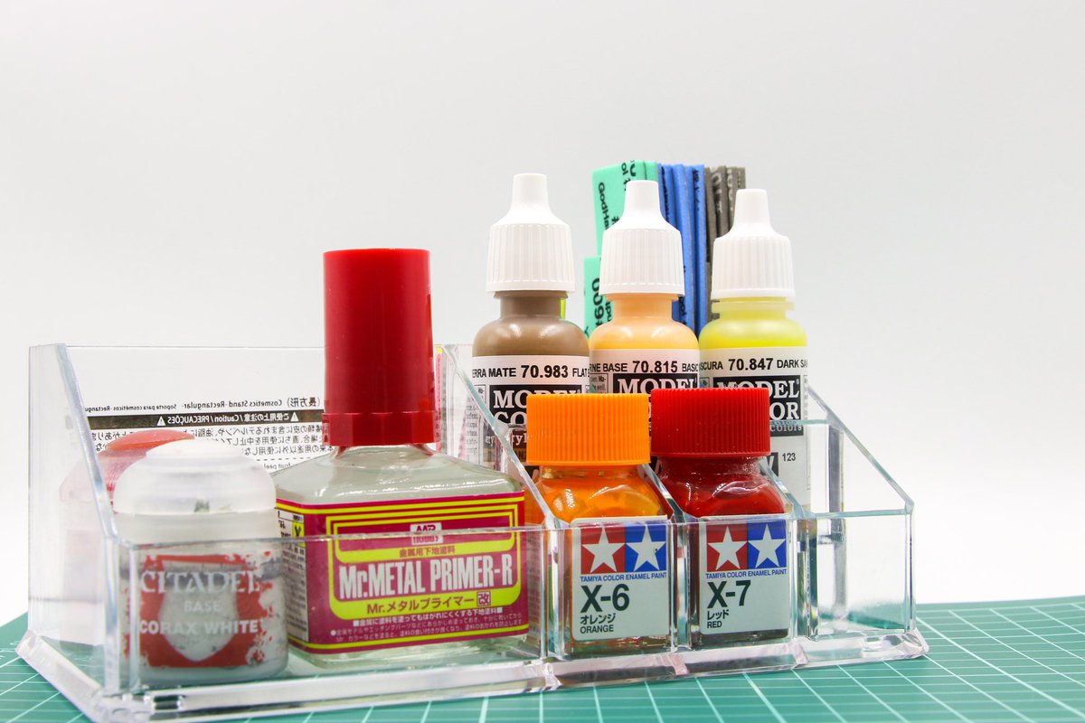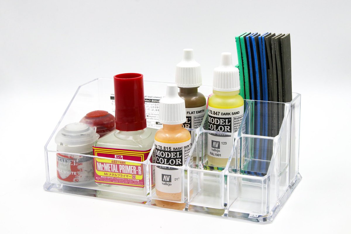 ファレホやタミヤのエナメルはマニキュアサイズだから、マニキュアケースがジャストサイズ ダイソーの150円のコスメケースに収納してみた
