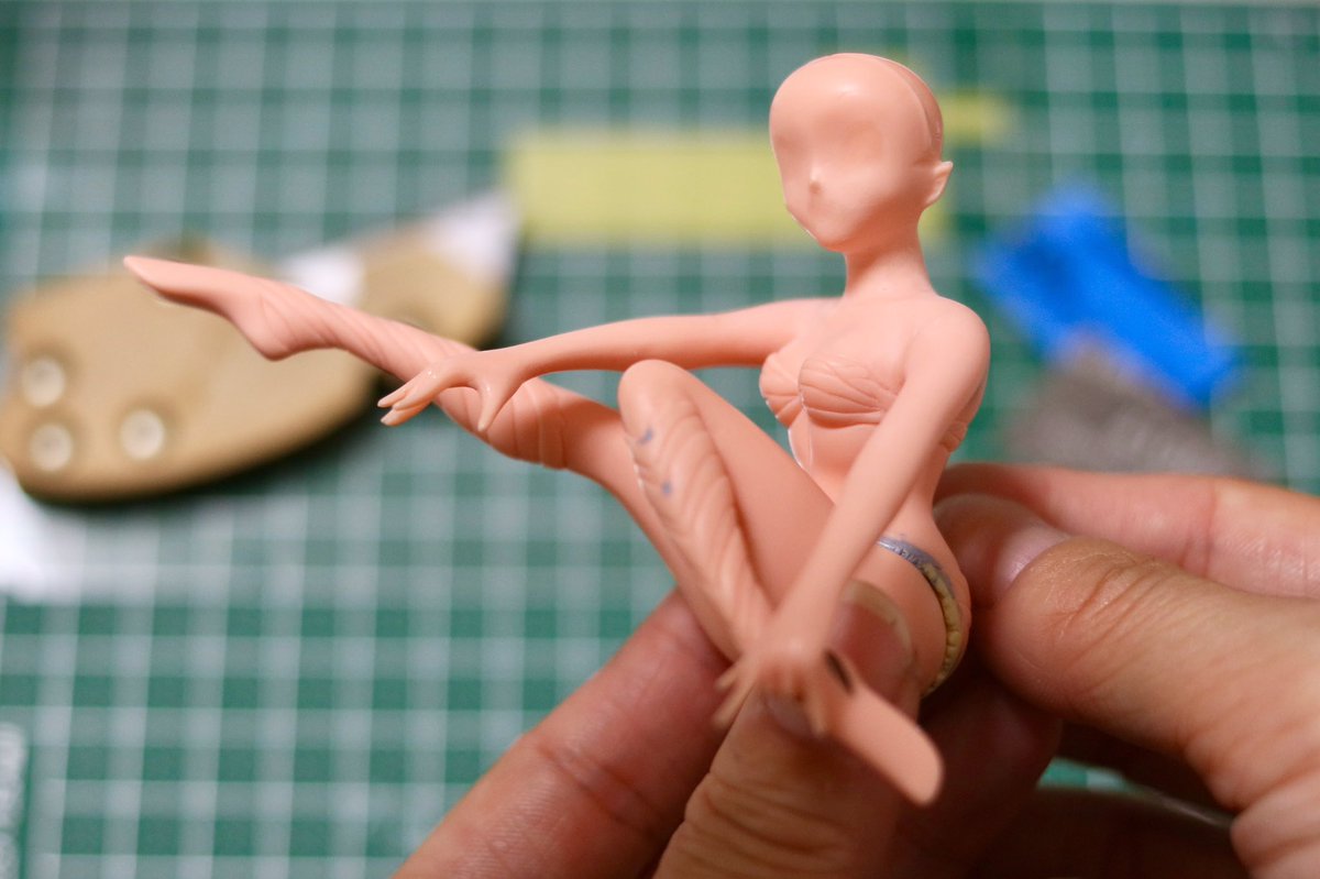 キラメキラムちゃん、本体完成!!!! 肌は成型色、他は全て筆塗り、目と口はメガミデバイスの朱羅ちゃんデカールです! 脚の角度が少し変わっただけで台座に上手く乗せられなくなってしまったので、台座は試行錯誤中... 取り急ぎ撮影したけど、台座が出来たらちゃんと撮影するぞっ