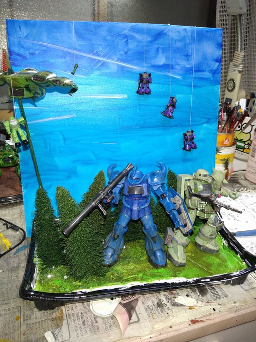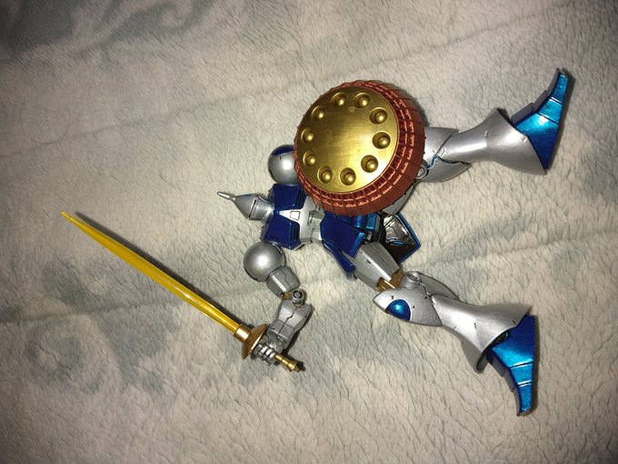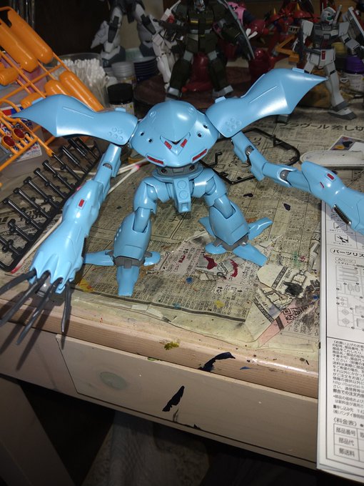同じキットを4回塗装。 全身金→メタリック青とメタリック水色→灰色と緑の量産機カラー→現在、シルバーとメタリックブルー。ようやくイメージ通りのギャンになった♪ #塗装 #ガンプラ #ギャン #ガンプラの画像貼るとRTされると聞いて #ガンプラ好きとつながりたい