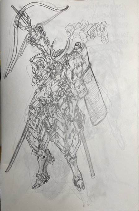 #イラスト #ロボット #アナログ 学生の頃のアナログのラフ画① 休みで掃除したときに発見 昔の方が描きたいものが今よりも明確で情熱があったな感がある。