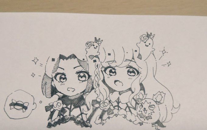 過去絵出てきたからのせとく(?)みれぃと七福わかちーです(いつ描いたかは不明🧐)