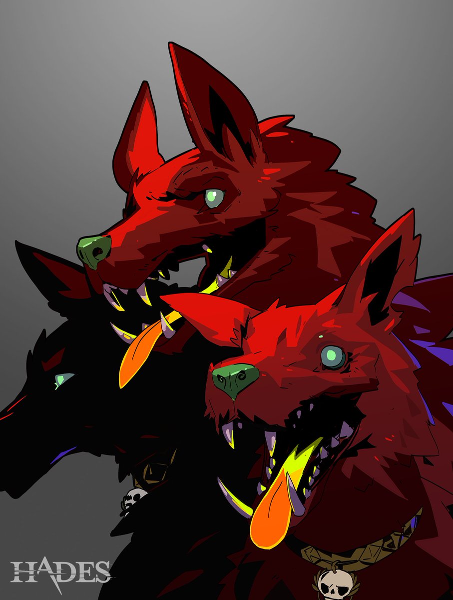Grecian m-m-m-m-monsters😬! Fun fact, if I could update two portraits they'd be Cerberus and Skelly's. They were amongst the very first portraits I'd made for the game so I hadn't locked the style down. #HadesGame