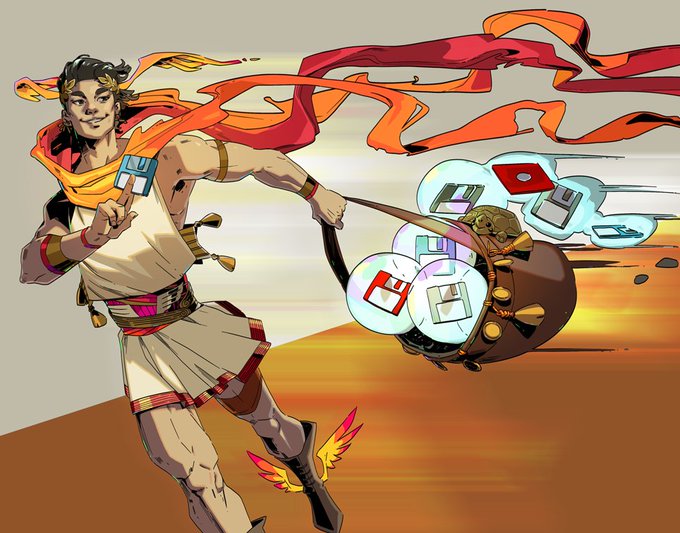I drew a bunch of floppy disks!!! Clean version of the #HadesGame Cross-save art feat. Hermes! 💾💾💾