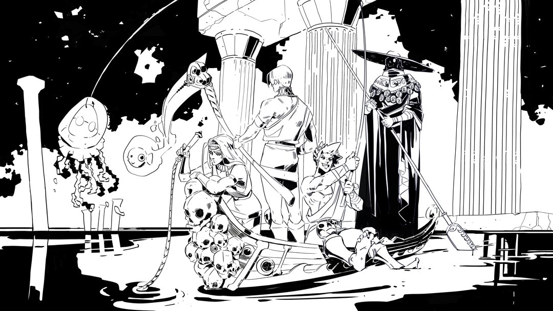 Prog shots of the #HadesGame Gone Fishing piece! I am so lucky this is digital ink. No idea how people execute so flawlessly without many adjustments when working with traditional!