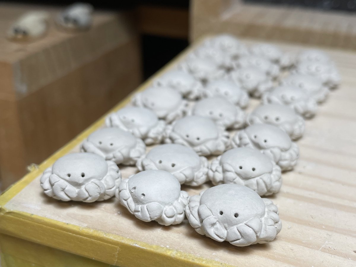 久しぶりにタラバガニを制作。 電気窯の上にて。 #陶芸