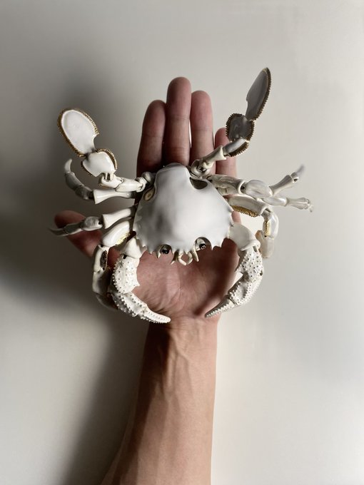 141 1008 高島屋の展示作品の撮影会♪ 白いガザミの迫力ショット! カメラマンの野村知也さんに感謝いたします。 #陶芸 23/03/12 01:26