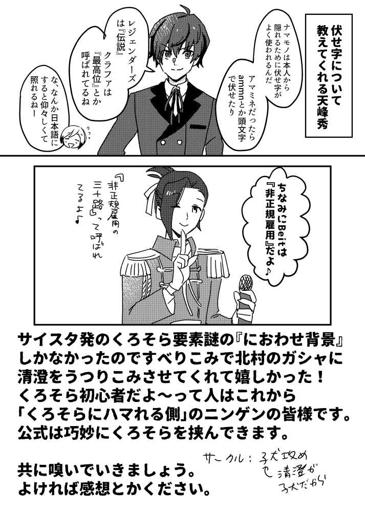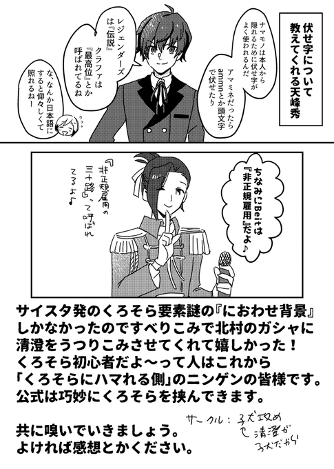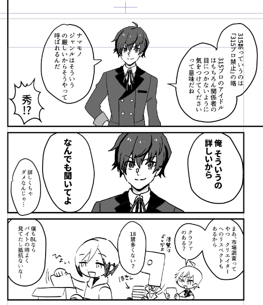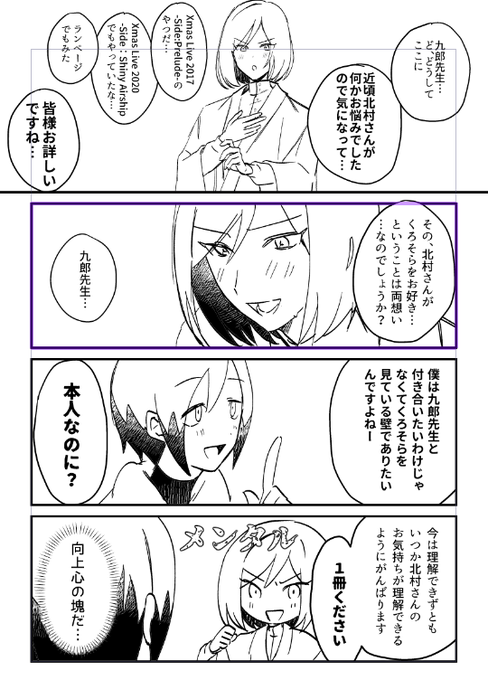 北村が315プロのナマモノ同人(くろそら)を出す漫画、手持ち分追加納品させていただきました! サンプル見て大丈夫そうでしたら読んでください! ▼通販ページ melonbooks.co.jp/fromagee/detai… サンプル①