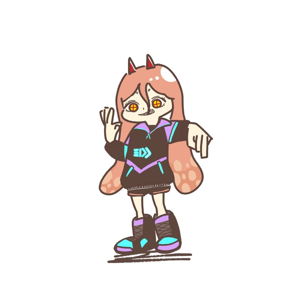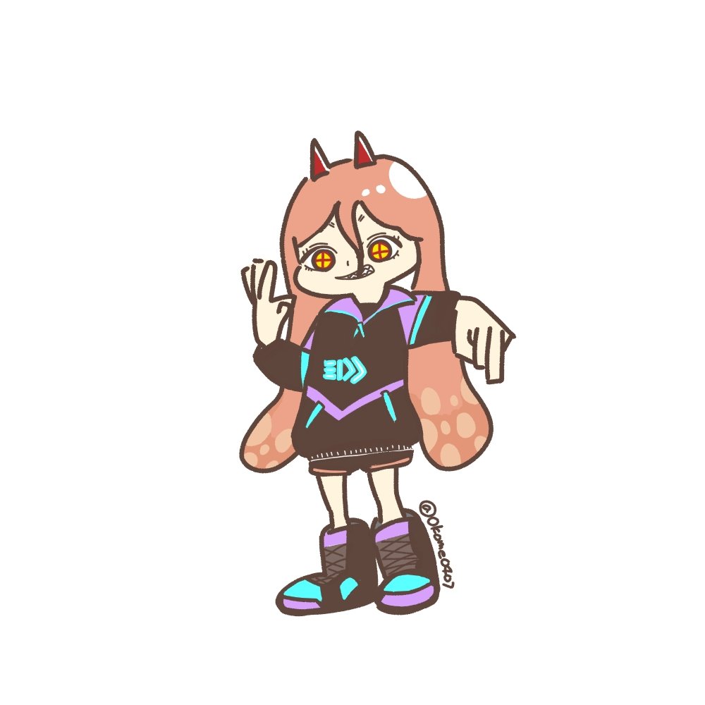 勝利のポーズ スプラの洋服ほんとにかわいい~~ #チェンソーマン #スプラトゥーン #イラスト #ゆるいイラスト