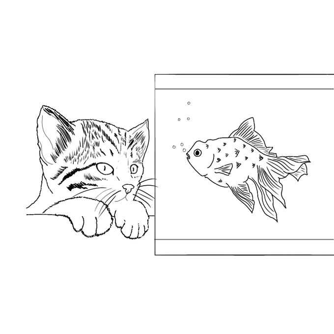 Inktober 2022 Day 25 Tempting A kitty wanting the fish. - @inktober #inktober #inktober2022 #inktobertempting #ktty #fish #0littlelassie0