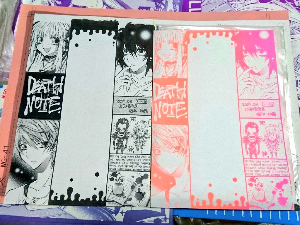 白黒で描いたやつが、グラデに成る! おもろいよね☺︎ グラデも12種位から選べるし、もっと色んなカラーで作りたかったなぁ。 それにしてもエドがブス。 目が離れ過ぎな気がする⋯( ・᷄ὢ・᷅ ) リュークとレムが可愛い♡(笑) #過去絵を投げて絵を描いた気になろうキャンペーン #同人便箋