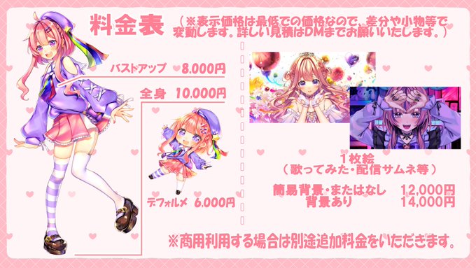60 291 料金表作りました~! 大体の料金の目安としてお考え下さい。詳しいお見積もりはDMにて行いますのでお気軽にご連絡お待ちしております!m(_ _)m ※今の時点でお受けしているご依頼の値段の変動はありません 23/04/25 17:28