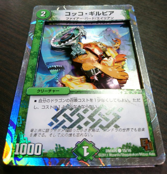今日の成果物です。 デュエルマスターズでコッコ・ギルピアです。 トランペットのギザギザ頑張りました。 ご査収の程宜しくお願いいたします。 #新作シャドーボックス #デュエルマスターズ #DM