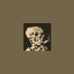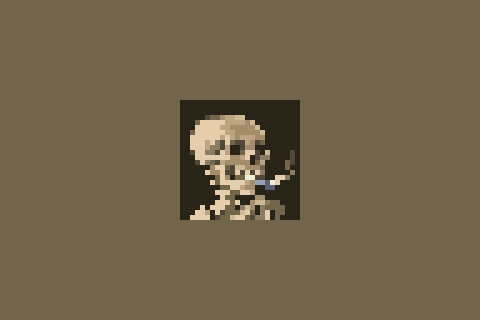 Head of a skeleton with a burning cigarette. Reference is the painting of the same name by Van Gogh. #ドット絵 #pixelart #pixelartist #pixelartwork