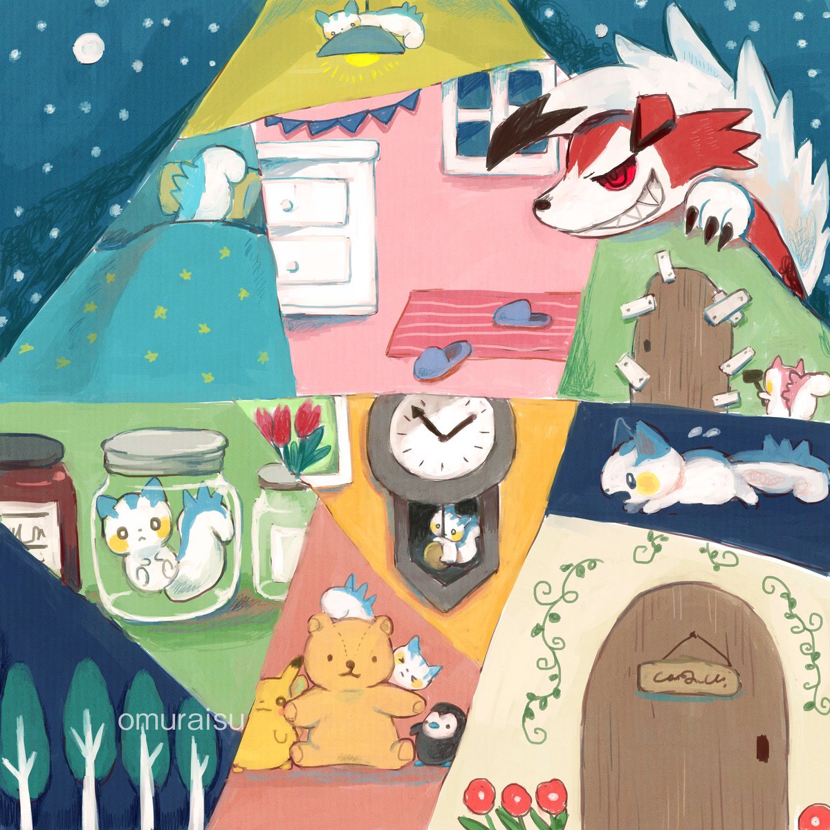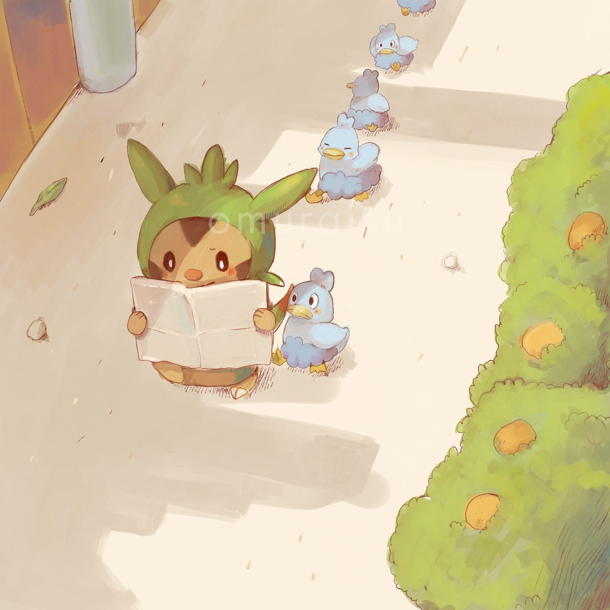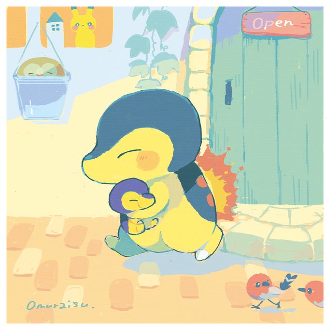 #ヒノアラシの日 先日、子供の頃に持っていたヒノアラシのぬいぐるみとお別れしたので、 絵の中のヒノアラシに大事にしてもらおうと思って描きました。
