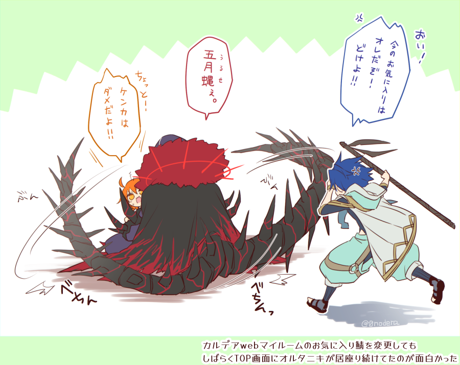 再掲できそうなセタンタ絵これくらいしかなかった webマイルームがバグってお気に入りを何度ンタくんに設定してもタニキが退こうとしなかった時のやつ
