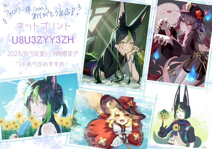 🌸フォロワー1000人ありがとうネップリ!🌸 ローソン&ファミマで出来ます! 期限は、2023/8/18(金) 19時頃まで! 暑いので長めに設定しました🙌熱中症には気を付けて🌻💛 フチありがオススメです〜! 買い物ついでとか帰りついでとかにでも〜!ご報告頂けるとにっこりします🫶