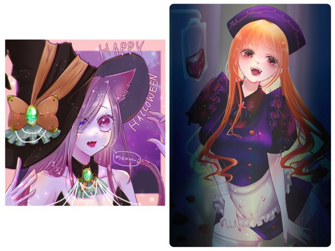 #独学でここまで成長したからお前も頑張れ #イラスト好きな人と繋がりたい 比較やってみたかった! ←2021年ハロウィン 2022年ハロウィン🆕→ なにが変わったかって目のサイズと髪の描き方かな? ちょっとは進化したかなぁ🤔