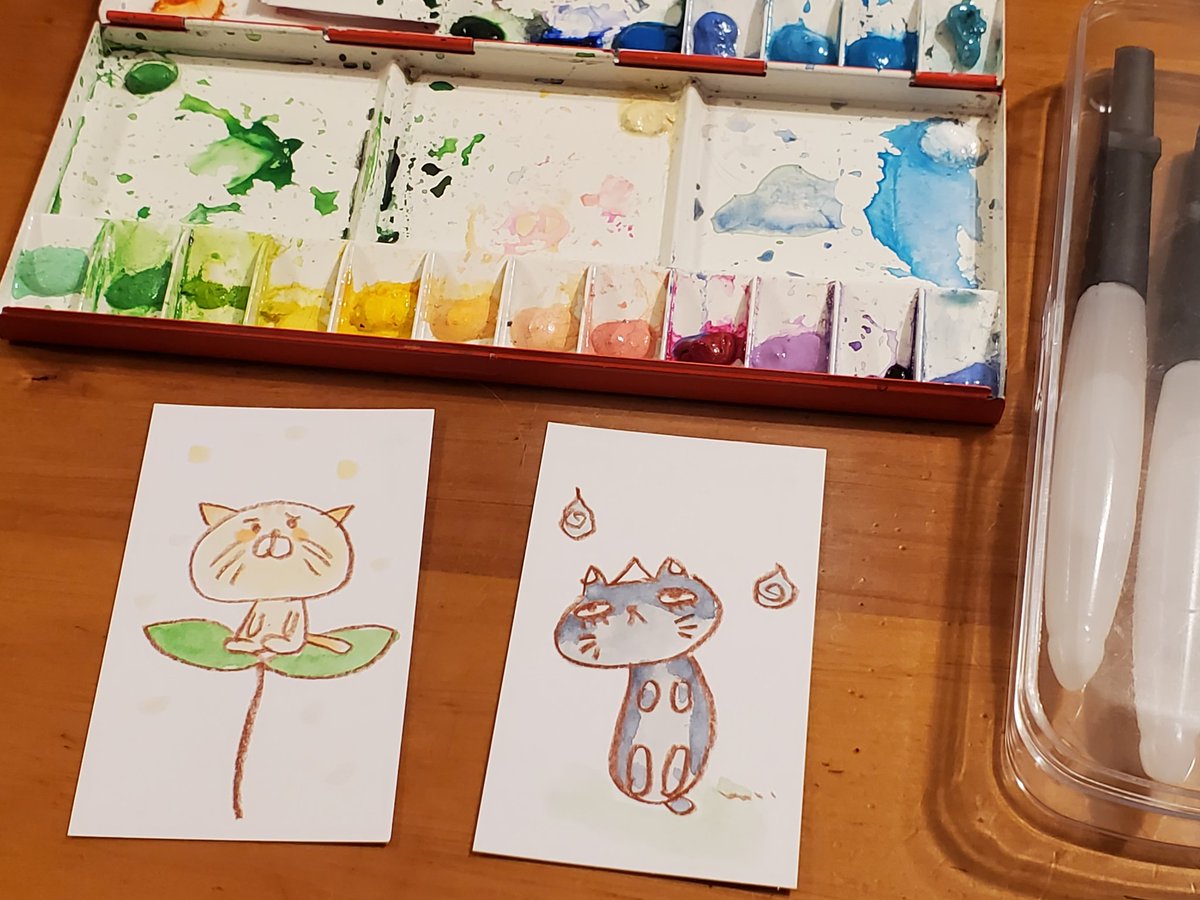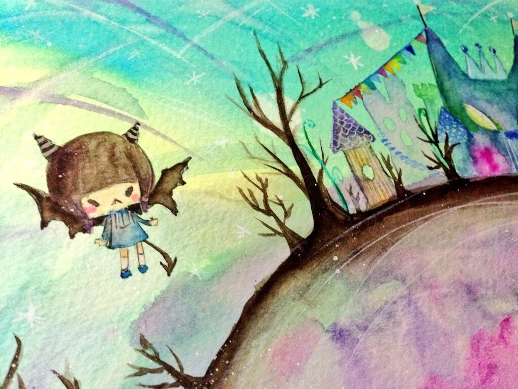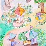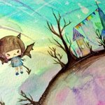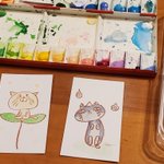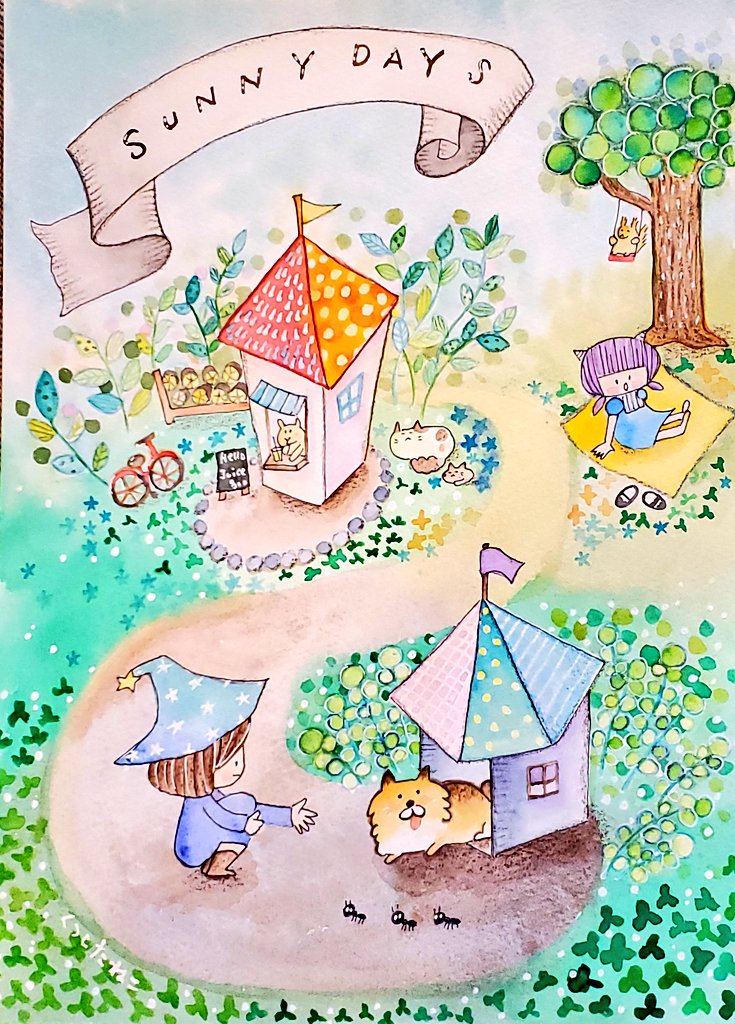 とりあえず大きな紙に描いた絵ファイルだけあったんでパチリ。 これアート学の時に持って行って教室で描いたりしていた懐かしのもの。大きい紙にちまちま描くのがブームだった頃の。 #マジョコマショリカ #水彩