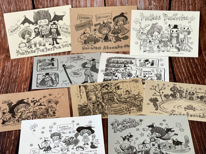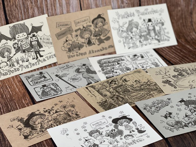 今月末27日の、BOOTH満月ショップにて モノクロポストカードセット たったの7セットですが💦 出します! 裏も可愛く出来たのでてみてー! #マジョコマジョリカ #満月ショップ #ポストカードセット #ペン画 #モノクロ