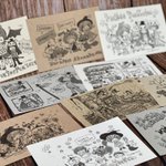 このカードね、めっちゃ紙にこだわったんです。 あちこちで買い集めた優しい手触りの紙 クラフト紙や馬糞紙、上質紙を使いました。 モノクロペン画を引き立ててくれる大人トーンの色合いが可愛いです。 #マジョコマジョリカ #満月ショップ #ポストカードセット #モノクロ #ペン画