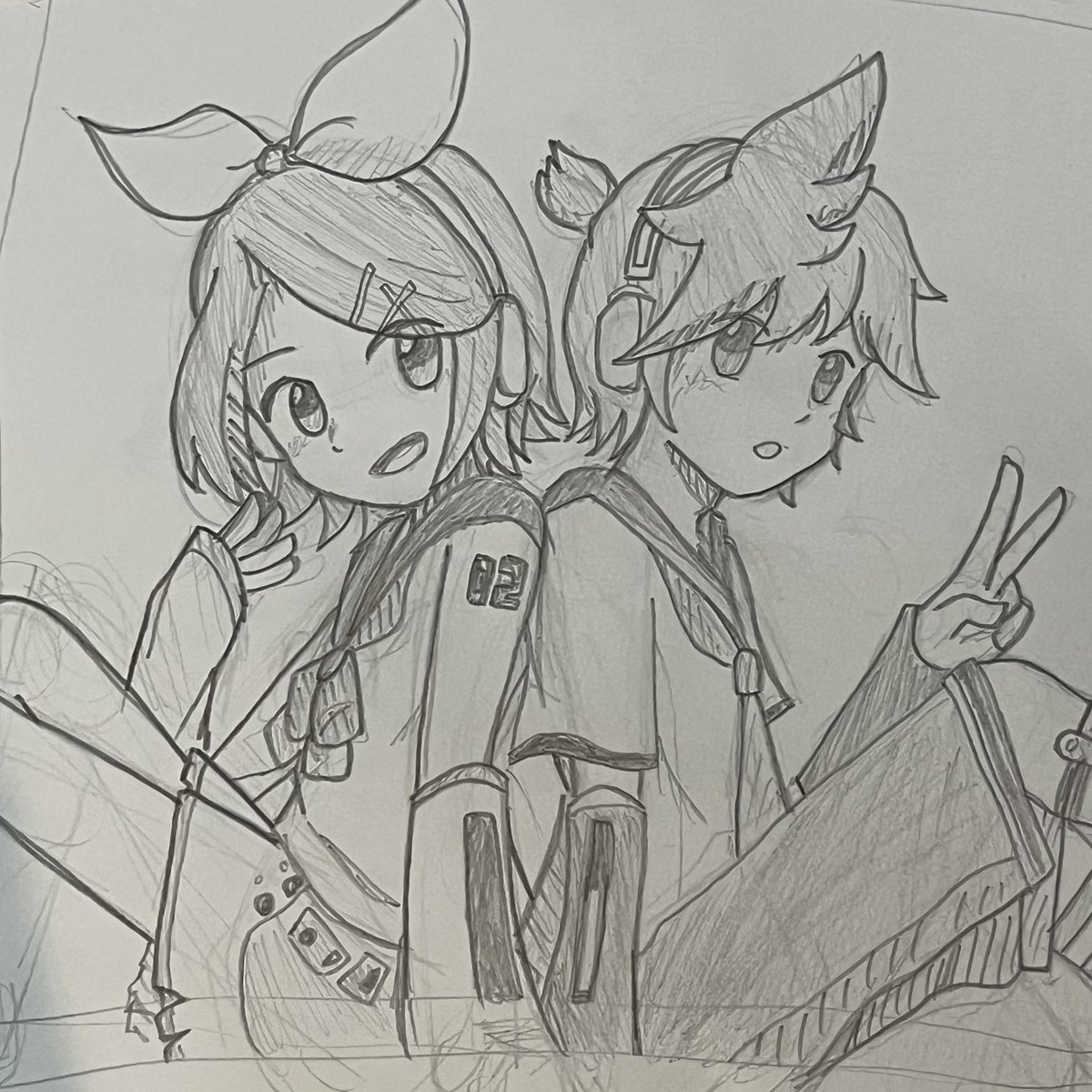 鏡音リンちゃんレンくんかけた またデジタルで描き直す……! #鉛筆画 #イラスト #鏡音リン #鏡音レン