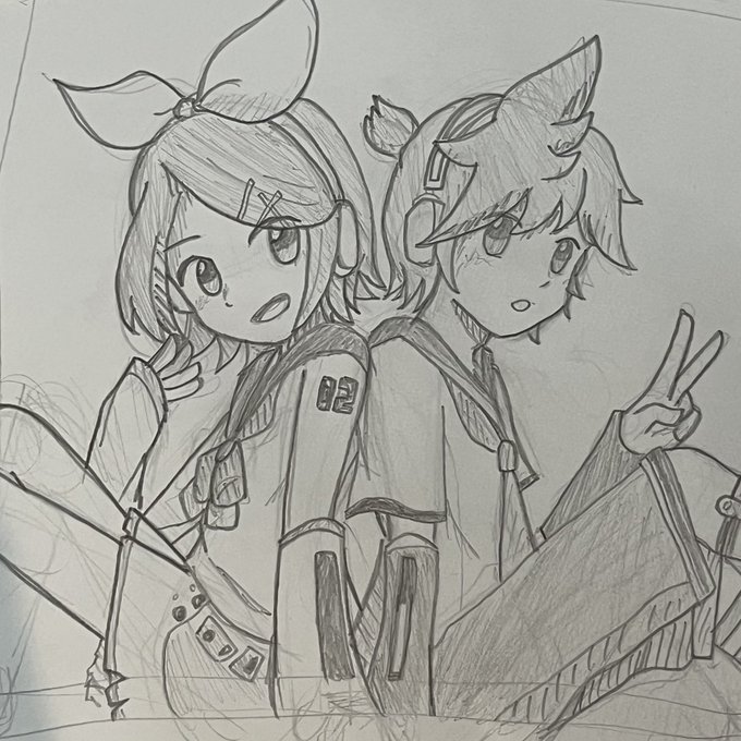 1 9 鏡音リンちゃんレンくんかけた またデジタルで描き直す……! #鉛筆画 #イラスト #鏡音リン #鏡音レン 23/01/27 21:56
