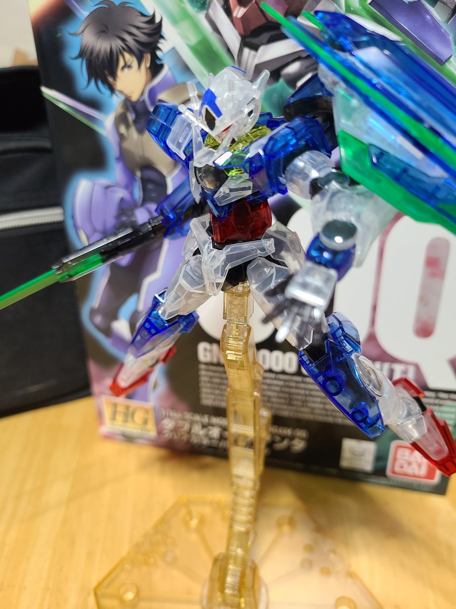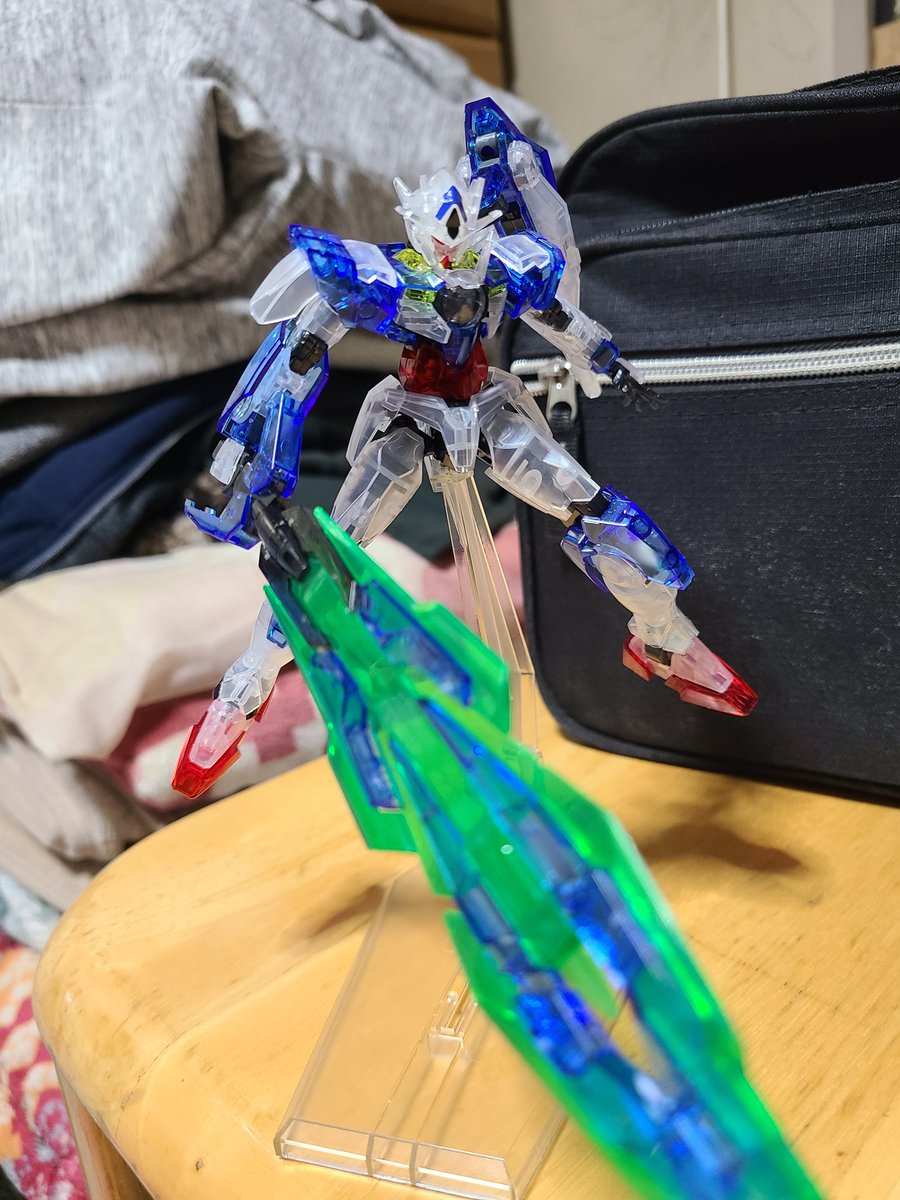 お店で見つけたときは、凄い嬉しかったな😊大好きなクアンタのクリアカラーバージョンです😆 イケメンですな(*/∀\*) かっこ良すぎて、いっぱい写真撮っちゃいました(〃^ー^〃)#今年最後のプラモ見せてやる #ガンプラ好きとつながりたい #ガンプラの画像を貼るとRTされると聞いて #ガンプラ