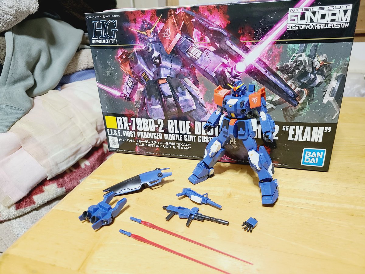 HGのガンプラ40機目、HGUCブルーディスティニー2号機、作ってました(*≧∀≦) ずっと作ってみたかったので買えて嬉しかったです😊 肩を青か赤どっちにしようか迷ったけど、赤にしました😆 リプに続きあるので良ければ❗#ガンプラの画像を貼るとRTされると聞いて #ガンプラ好きと繋がりたい #ガンプラ
