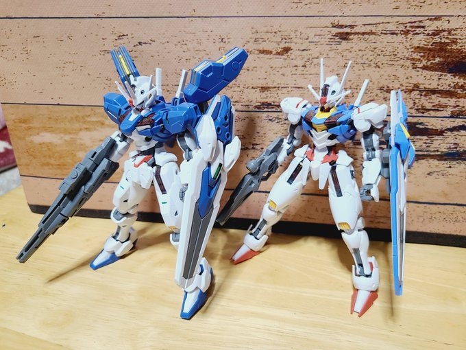 前のエアリアルと並べて見たよ(*^^*) 改修型の方がガンダムっぽい☺️ ガンビットを身体中に付けてるのかっこいい❗ガンビットライフルも良いぜヾ(*>∇<*)ノ #ガンプラの画像を貼るとRTされると聞いて #ガンプラ好きな人たちと繋がりたい #ガンプラ