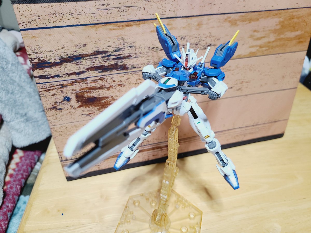 ライフルのビームソードかっこいいね☺️けど重くなっちゃう😅ビームサーベルの色、青ってのもいいね(*・∀・)ノ 膝たちもできるし、シールドを機体に付けれて、付けるとかっこ良くなるねヾ(*>∇<*)ノ #ガンプラ好きな人と繋がりたい #ガンプラの画像を貼るとRTされると聞いて #ガンプラ