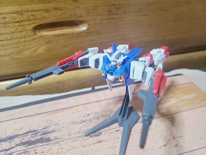 変形させたかったけど、肩のロック❓️を上手動かせなくて変形できませんでした😅すいません🙏 後ろの装備と別にしても、ありだね(*>ω<*)かっこいい😆 前作ったクアンタと一緒に写真撮ったよΣp[【◎】]ω・´)#ガンプラ好きな人たちと繋がりたい #ガンプラの画像を貼るとRTされると聞いて #ガンプラ