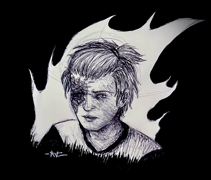 🎃✒️Inktober Day 5 - Flame🖋️🎃 Once I got out of my emo phase I had to make an excuse for drawing Skilar’s bangs over his eye, so…I just burned that half of his face off in the name of character development 😅 #Inktober #inktober2022 #art
