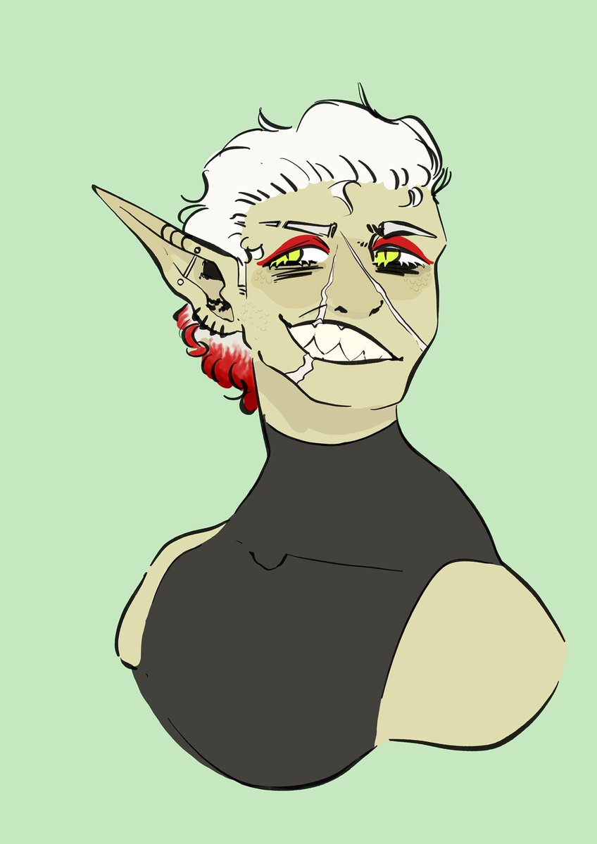 Ray, champion of the pit and professional himbo. He's a half-elf/half-lizardfolk and I think he's incredible #procreate #procreateart #dnd #dndart #dnd5e #DnDcharacter #digitalartwork #DigitalArtist