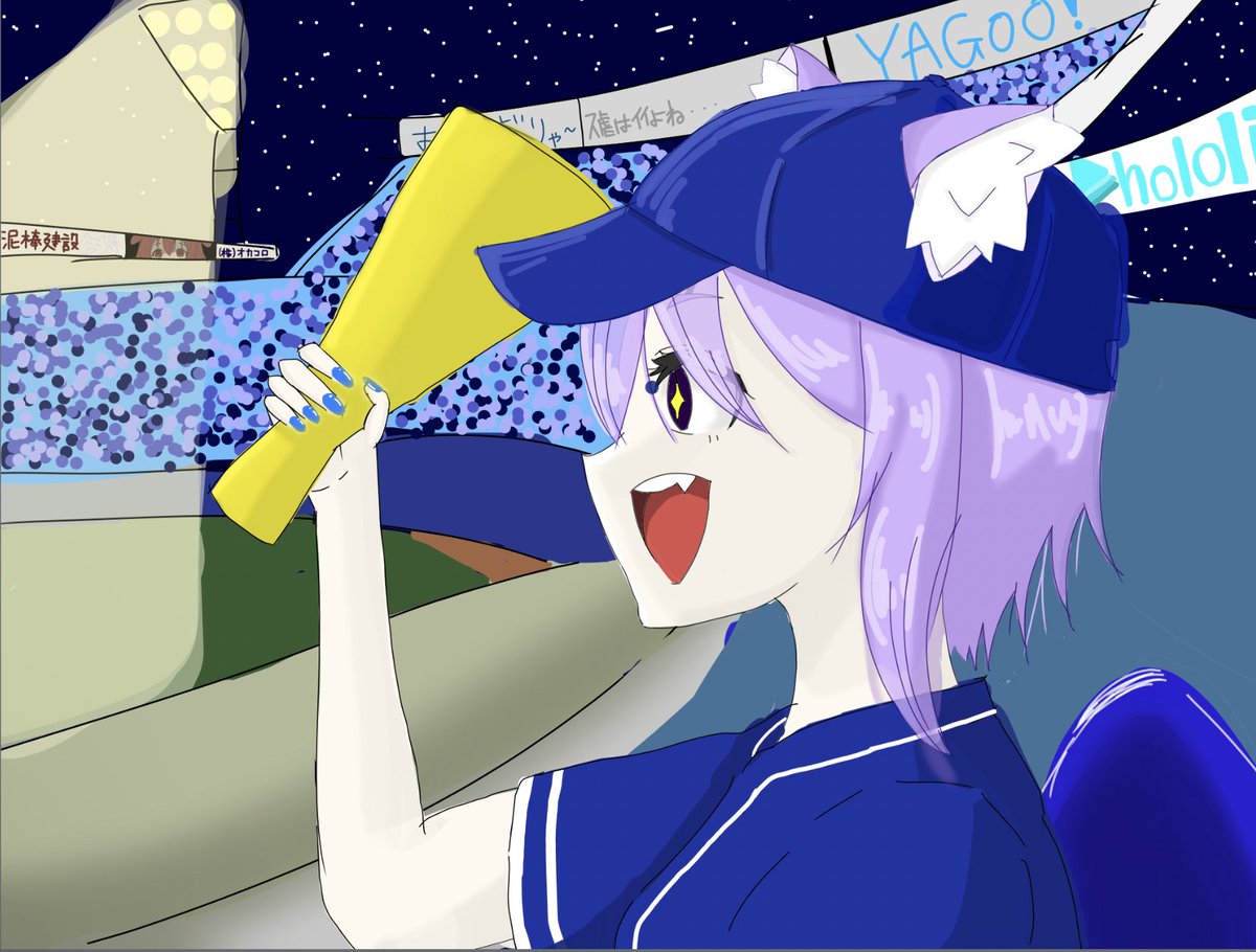 球場の隣の席の人がなんか見た事ある…… #猫又おかゆ #絵かゆ