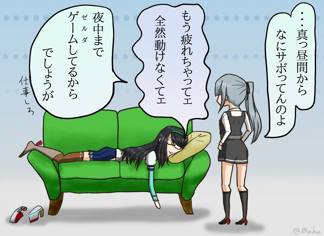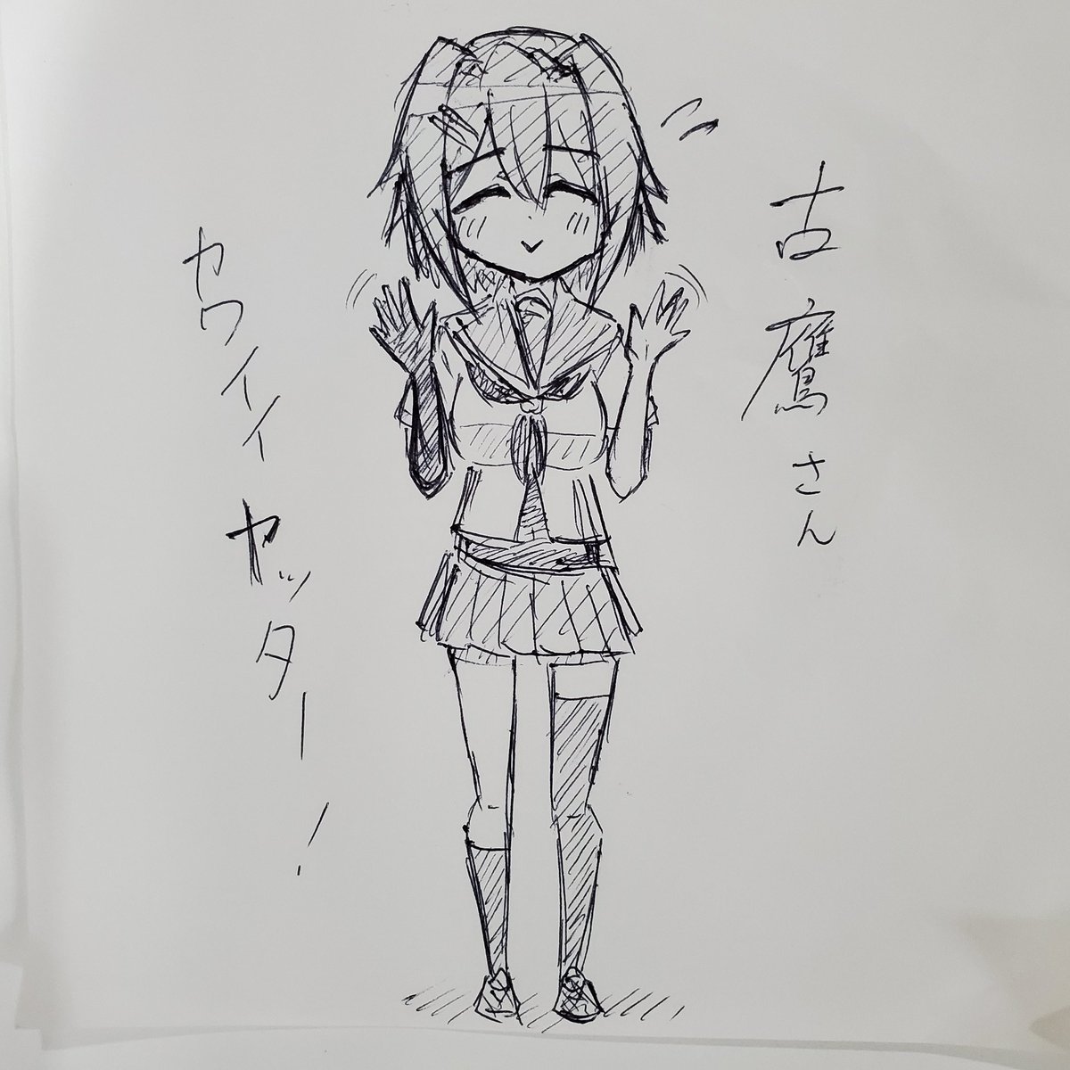 如月ちゃんと水無月ちゃんおやつタイム。 なんかシンプルにほんわか平和な絵を描きたかった。 #艦これ版深夜の真剣お絵描き60分一本勝負 #艦これ版真剣お絵描き60分一本勝負_20230605