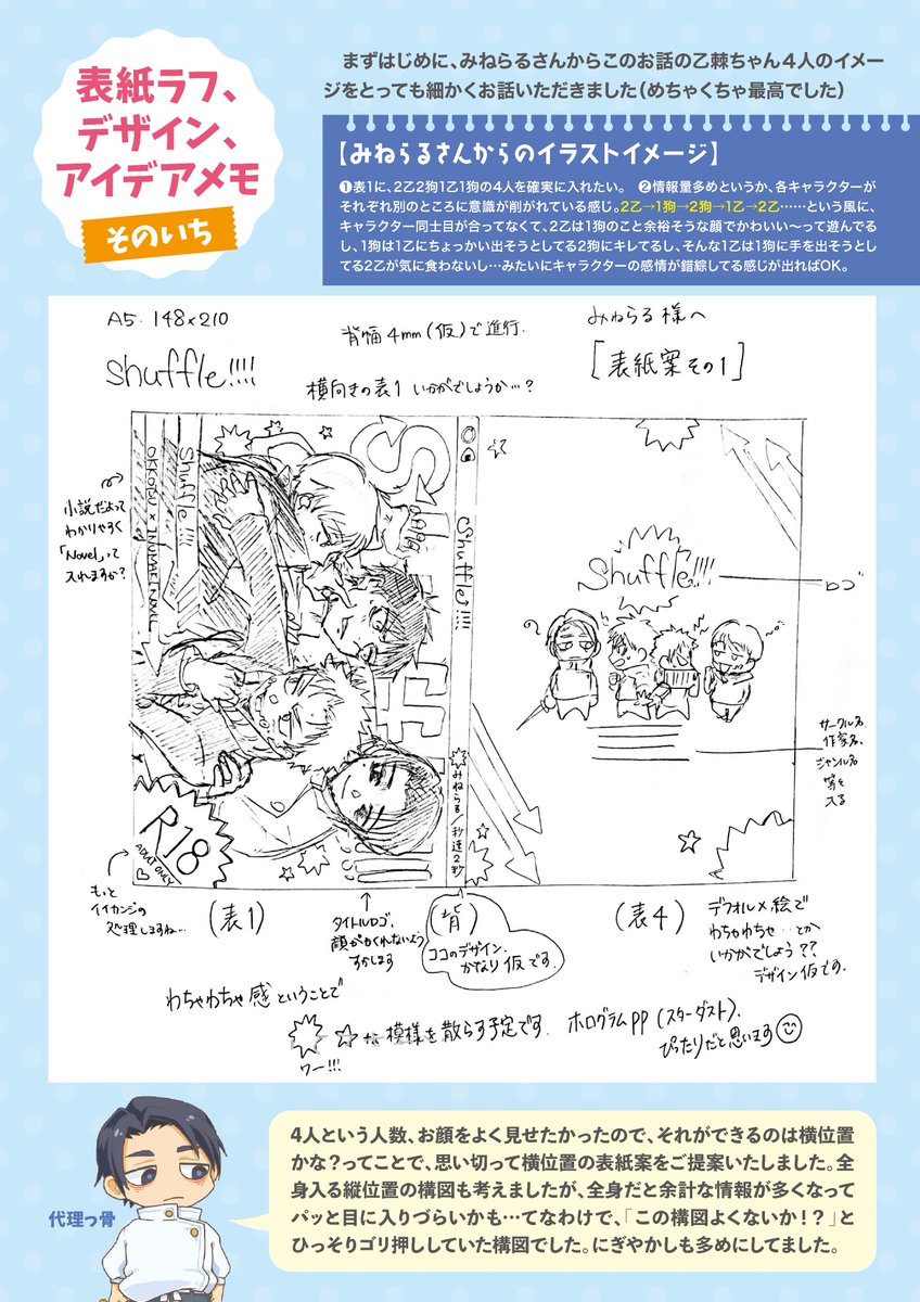 みねらる様(@Mugityanosagi)の御本の表紙絵・デザインをやらせて頂いた時のあれやこれを画像にしました🙇♂️ 全9P。ラフや、当時の反省点おかかなど色々。 poipiku.com/4643640/833368…