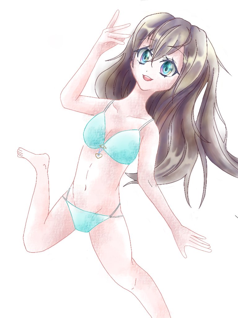 今回のイラストは得意のアニメ塗りとは別の、水彩風にしてみた✨ 結構綺麗に塗れたんじゃないかな?? あとは 背景描いて完成‼️ #イラスト #水着イラスト #夏