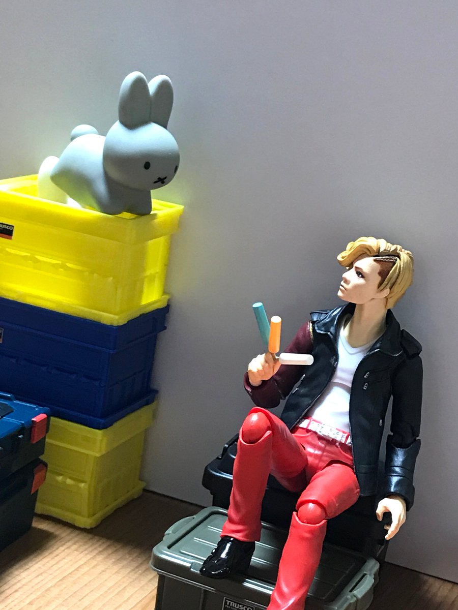 22 57 ボッシュとトラスココンテナのミニチュアをリビングに放置していたら、ウチの奥様のセンスあふるるオモ写画像をいただきました。 野生のミッフィーさんが神々しい✨ #オモ写 20/06/27 19:11