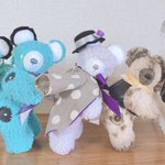 77 311 寮服作ったよ〜✩°。⋆⸜(* ॑꒳ ॑* )⸝ バンダナで見えないけど、ラギーくんのお洋服もちゃんと刺繍までしてるよ◎ ジャックくんはもふもふすぎて、お洋服がいい感じに窮屈に見える( Ꙭ)!! #twst手芸部 20/08/25 18:11
