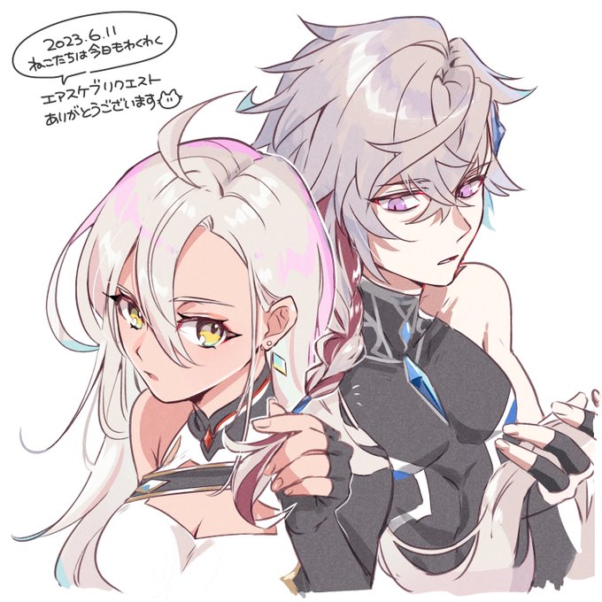 チハヤとクリカラさま〜🎀テニスのパジャマかわいい (リクエスト絵!)