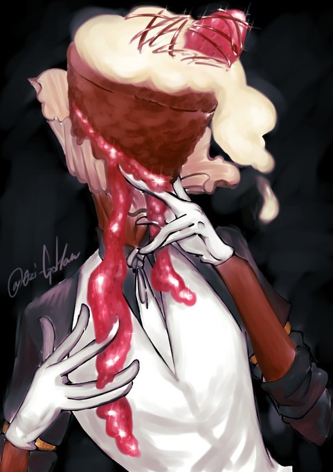 これ「くれない」を「べに」って読んじまって、 べに??→楮朝にルージュ??→口切るとかして出た血グイッて拭いて伸びちゃったのがそう見える楮朝ピンポーン💡 って正月からなったので楮朝本気のべに。 #朝の挿絵 twitter.com/zentalmogami_V…
